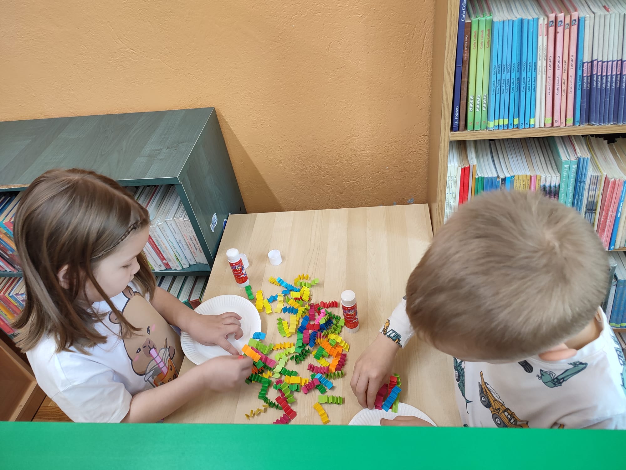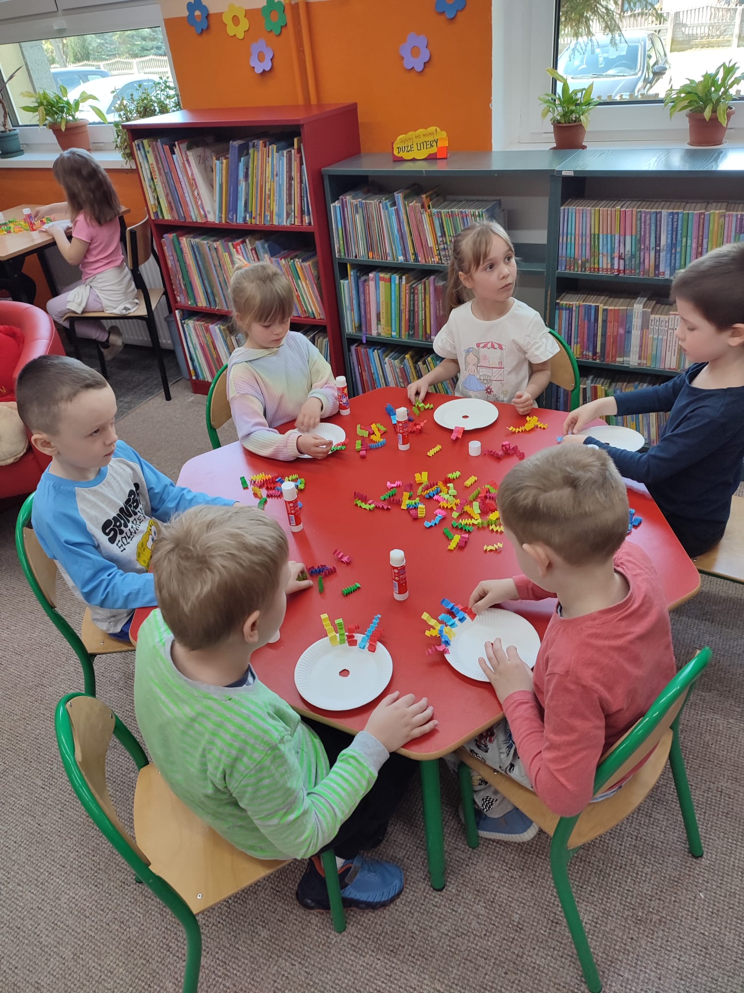 Ulubieńcami dzieci jest KLAUN – kolorowo wymalowany przebieraniec ze sztucznym nosem. Prawie wszystkie 6-latki, które przybyły w tym tygodniu na nasze zajęcia, były już na przedstawieniu cyrkowym, więc przygotowana dla nich praca plastyczna nie sprawiła im żadnej trudności 🙂 Przed jej wykonaniem dzieci wysłuchały opowiadania „Marysia idzie do cyrku”.